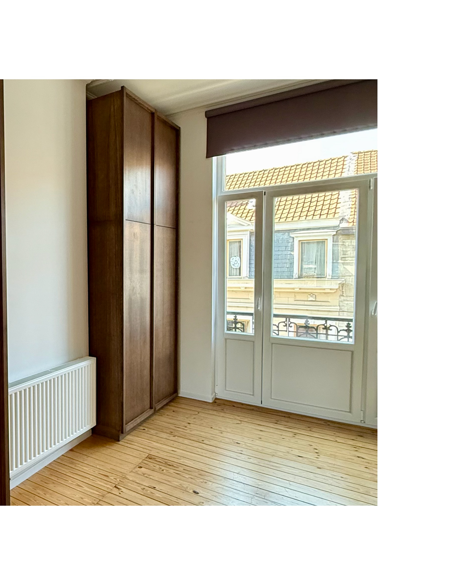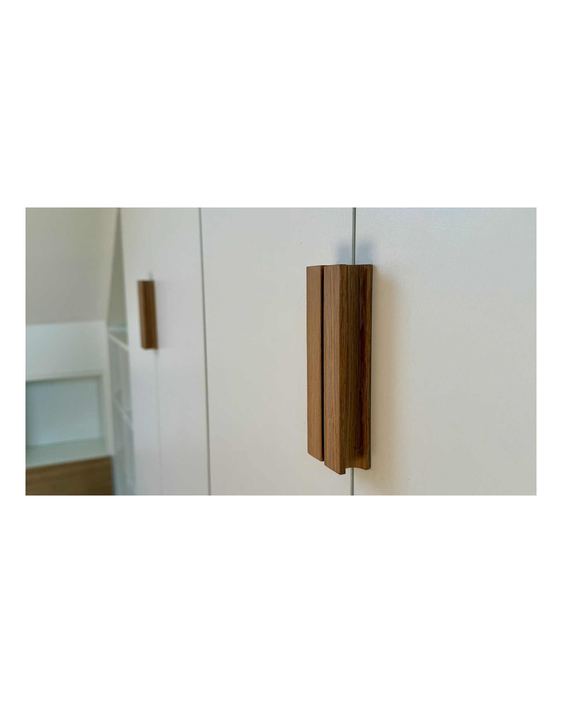 Espace dressing en panneaux plaqués chêne et en chêne massif teinté, Ixelles